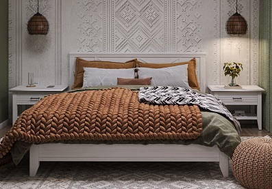 Светлые кровати уместно смотрятся в стиле классицизм, барокко, хай-тек, прованс, минимализм, лофт, модерн. Кровати в светлых тонах гармонируют с темными и светлыми обоями, покрытием пола, меблировкой. Целесообразно будут выглядеть черные или яркие контрастные комоды, шкафы, тумбы, декоративные элементы, которые придают завершенности интерьеру.