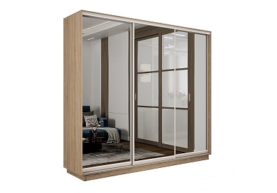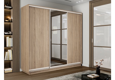 Шкаф-купе Премиум 3х дв 210х240х60 Сонома ДСП/Зеркало/ДСП 210x240 Дуб Сонома, С полками