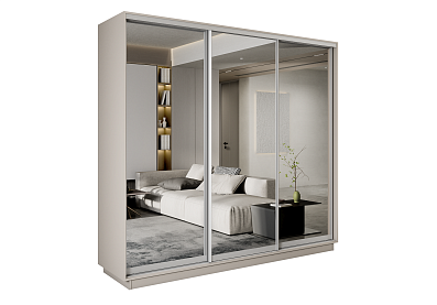 Шкаф-купе Премиум 3х дв 210х240х45 Кашемир Зеркало/Зеркало/Зеркало 210x240 Кашемир , С полками