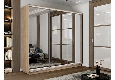 Шкаф-купе Премиум 3х дв 210х240х60 Сонома Зеркало/Зеркало/Зеркало 210x240 Дуб Сонома, С полками