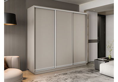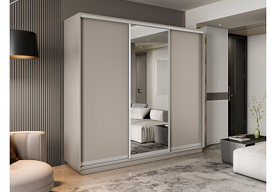 Шкаф-купе Lux 210х230х57 кашемир Белый глянец/Зеркало/Белый глянец