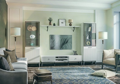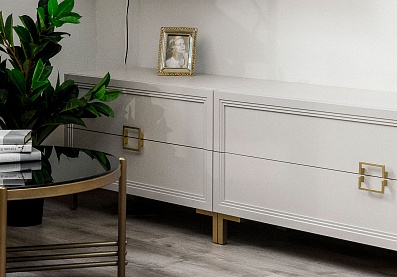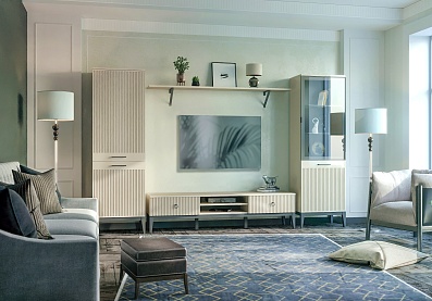 Тумба Кантри под телевизор с выдвижными ящиками Блан шене