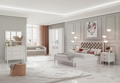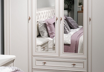 • Комод с тремя секциями, крайние секции комода — отделения с одной съемной щитовой полкой за распашными фасадами;