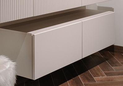 - Для выдвижных ящиков используется система скрытых направляющих Quadro. Это позволяет легко и почти бесшумно выдвигать-задвигать ящики, а также обеспечивает надежную фиксацию ящика и гарантирует длительный срок службы даже при высокой нагрузке.