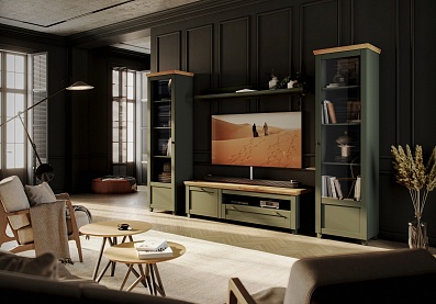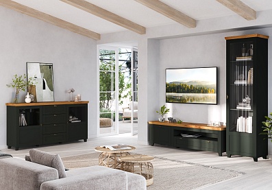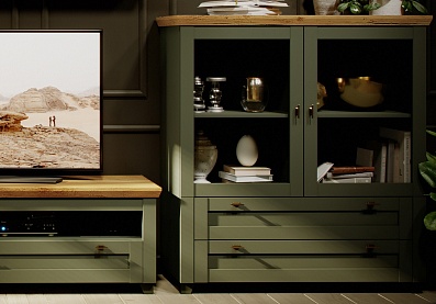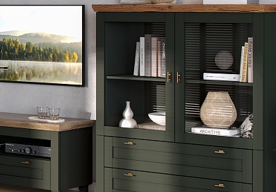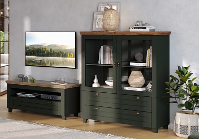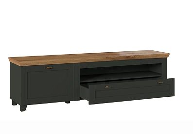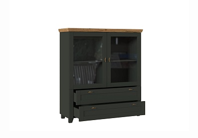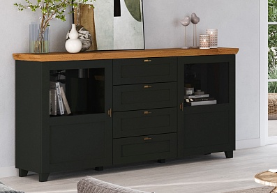 - Комод на деревянных опорах с 4-мя выдвижными ящиками и 2-мя распашными фасадами;