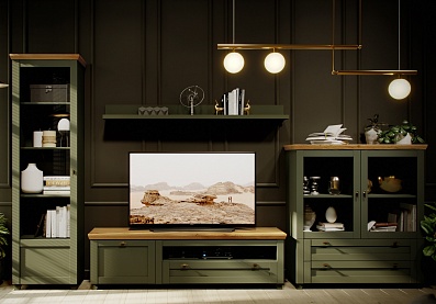 - Комод укомплектован 2 полками ЛДСП за распашными дверьми и 4 ящиками;