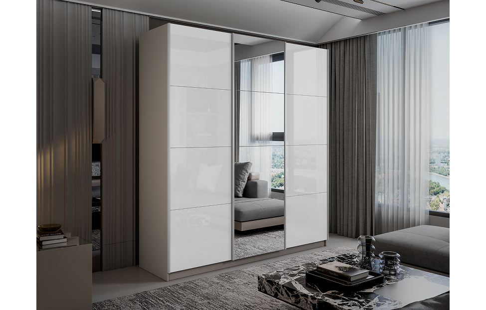 Цена на Шкаф-купе Lux 210х230х57 кашемир Белый глянец/Зеркало/Белый глянец от производителя , приобретите в кредит!