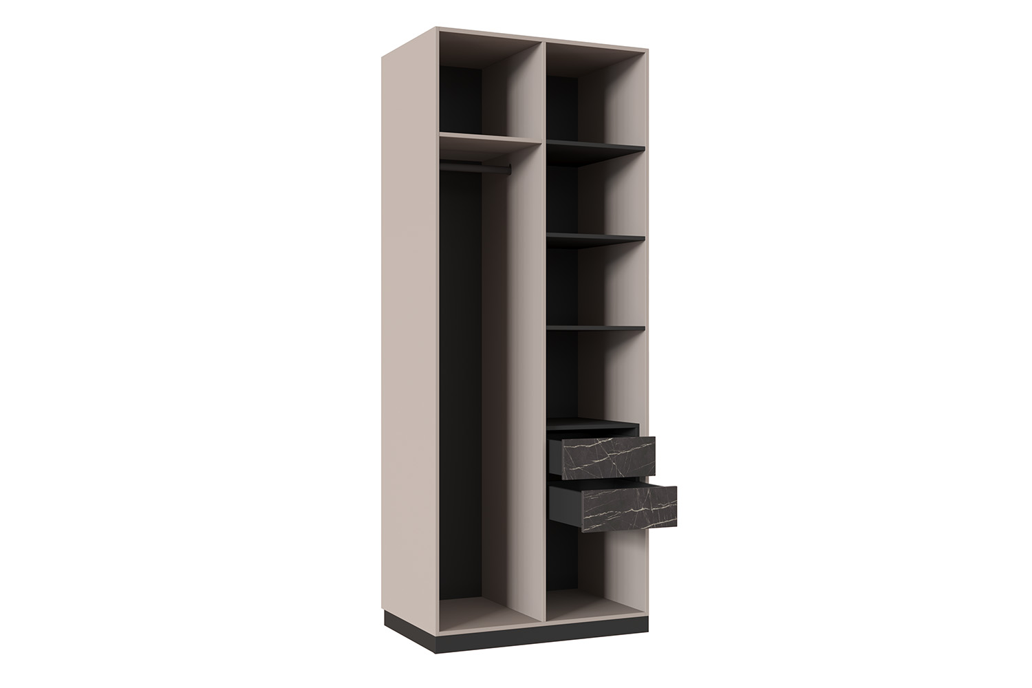 - Шкаф с двумя распашными фасадами и двумя выдвижными ящиками;